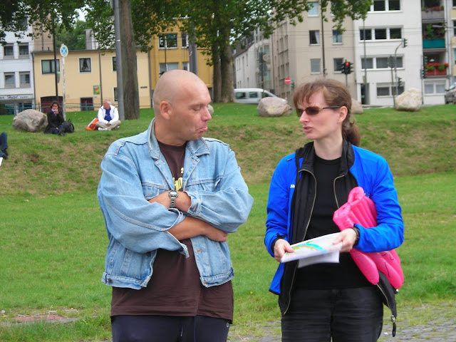 Wie auch, sportlich war es ein absolutes Desaster, psychisch gab es ein paar Mini Lichtpunkte im Tal der Finsternis... Trainingsziele weit verfehlt, Wettkampfbeteiligungen unterirdisch und das Hauptziel MD Köln 09 nicht nur verfehlt, sondern noch nicht mal die kleine Distanz gemacht... Von 5 gemeldeten OD keine einzige angefahren, geschweige denn begonnen... 3 Sprints gemeldet aber nicht angetreten und zu allem Überfluß auch noch Borken abgebrochen.... Freiwasser schwimmen ist katastrophal, mir fehlt der klare Kopf dafür sowie die Kraft und Ausdauer länger ohne Bahn zu kraulen.. Ok, letztes Jahr war es noch schlimmer, da war ich nur einmal im See bei der VD in Bocholt.... Radfahren ist nach starken Beginn im Winter auf der Rolle völlig zusammen gebrochen, mir fehlen km, Kraft, Lust und Grundlagenausdauer, von Tempo gar nicht zu sprechen.... Jetzt versuche ich mal das wenige Positive zu finden ( was ihr mir immer predigt).. 1.zu Ute Mückel gegangen, das Highlight und die beste Entscheidung des Jahres... :) 2. 2 mal gestartet (Aachen und Borken) persönlicher Rekord 3. Dazu noch 3 Wettkämpfe besucht (2x Köln und IM Frankfurt) 4. Zum ersten mal meine Mauer des Schweigens durchbrochen und ein paar Leutchen von Euch persönlich kennen gelernt.. (was mir sehr viel bedeutet) 5. mich entschieden den Blog weiter zu führen (oder doch einen neuen zu starten?) 6. ich bin aus dem Schatten meiner Höhle getreten und habe mich hier durch Bilder erkennbar gemacht... 8trotz meiner Fettsucht und dem widerlichen Aussehen) Jetzt gibts noch 2 Bilder von Köln: verzweifelte Versuche dem Landei die Stadt zu erklären... Abendstimmung.... |