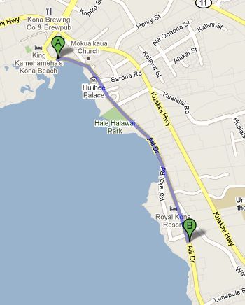 Aufgrund der Nachfrage nochmals die Details: Treffpunkt ist Ecke Alii Drive/Kahakai Road um 6h. Start zum Sonnenaufgang um 6.15h. Ziel ist die Ziellinie des Ironman am Pier. |