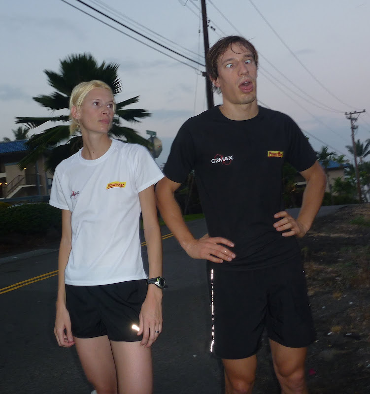 Treffen im Morgengrauen am Alii Drive Ecke Kahakai Road. Christine Schleifer und Seb Kienle (mit leichter Vorstart Nervositaetsuebelkeit): Julia aka "Das Maedchen" und Ihr Pfleger "Nopogobiker" bei der Wettkampfbesprechung: "On your marks!" "Set!" Fruehstart von dem Starter aussen rechts. Sofortiges DQ! Dann das Rennen: http://www.youtube.com/watch?v=HPwZmJbpYrI Hauchduenner Sieg fuer Christine Schleifer in blitzschnellen 4:54.9 vor Sebastian Kienle in 4:55.2. Platz drei nach ueberragender kaempferischer Leistung fuer Julia in wieselflinken 5:34.8. Rechnet das mal auf ne 10km Zeit um, da wird's Euch schwindlig! Topfavorit Kienle auf Platz zwei mit Traenen in den Augen, da die heissbegehrten T-Shirts an den/die Gesamtsieger und die erste Frau gehen. Da Christine beides vollbrachte, geht das T-Shirt an Julia. Next Stop: Dusseldorf! (und - vormerken: MZUNGO MILE Heidelberg bahnt sich am Horizont an.) Free & Funky - the MZUNGO MILE |
