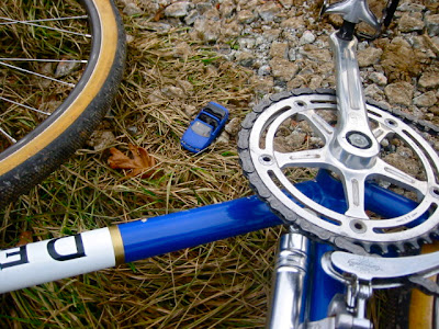 Zeitumstellung! Ganz ehrlich: ich würde das nicht brauchen. Geschiss da, jedesmal. Immerhin ne Stunde mehr, um aufm Rad zu sitzen. Obwohl;- die ging eigentlich dafür drauf, zu überlegen, welches ich nehme und unter uns: n paar Grad mehr am Thermometer wären ne Stunde länger auch nedd schlimm. Letztenendes wurds dann Shepherd;- weils einfach zu genial ist, wie das Ding auf diesen Reifen dahingleitet. Keine Ahnung, wie das dann auf irgendnem anderen Rad gewesen wäre, aber... ...es ist weniger der Umstand, dass dies n Golf Cabrio ist als die Tatsache, dass die Blautöne absolut zueinander passen...:Cheese: Beware of the Blockwart! Mit Gottes Segen wird ein Viech sich vor die Flinte bewegen... Komischer Ansitz! Undn irgendwie komischer Singletrack, oder? Dann wurds langsam finster und frisch... Natürlich haben uns kurz vor zuhause die Cops im letzten Dämmerlicht hopsgenommen. Dank der nachvollziehbaren Argumentation, mit der Sichtbarkeit im Dämmerlicht scheine es nicht so schlimm zu sein, schliesslich hätten sie uns ja auch gesehen und wir hätten nur noch wenige hundert Meter bis zum heimischen Öfchen, liessen sie uns ungeschoren und zur Eile angetrieben weiterradeln. Heureka! Nochn Wort zu Puschen: nach endloser Suche und einigen Telefonaten isses mir gelungen, zwo Felgen für die 650B-Story anzuleiern. Prinzipiell iss das weniger diffizil, als es nu wirken dürfte, aber ich wollte ganz bestimmte. Die polierten von Velo Orange dürften sich rein preislich weitestgehend erledigt haben (40Taler je Stück, davon zweie und vorneweg das anderthalbfache nochmal obendrauf für Zoll und Steuer, Versand aus den VS von A mal aussen vor gelassen), allerdings hab ich noch ne Anfrage bei nem Franzosen laufen, der die auch an seinen eigenen Rädern verbaut, sie jedoch normal nicht einzeln verkauft, daher hab ich nu erstmal nen Satz Rigida ZAC21 geordert. Die standen direkt an zweiter Stelle meiner Wunschliste und kosten nichtmal die Hälfte derer von VO, die Versenderei, das Gerenne und Gehampel mit Zoll usw. mal vollkommen aussen vor gelassen. Ausserdem hab ich davon (wenngleich in anderer Grösse) schon genug verbaut, um zu wissen, dass sie taugen und was ich davon zu halten hab. Gutgut, die wenigsten werden diesem Gedankensprung folgen können, aber jedesmal, wenn ich aufm Shepherd sitze und das Gefühl hab, die Reifen saugten sich am Untergrund fest, obwohl sie rollen wie Sau, ziehen meine Gedanken zu der 650B-Geschichte und dem Hintergrund selbiger und wieso ich die anleiere: nahezu identischer Raddurchmesser wie beim Rennrad (daher im Rennrad fahrbar)(-->Gewicht!), aber grösseres Volumen und dadurch Komfort (und wie uns die Reifenhersteller seit ein paar Jahren predigen, leichterer Lauf als ein schmalerer Reifen mit mehr Luftdruck)(Luftwiderstand lass ich grad mal aussen vor, weil ich mich derzeit eh nedd so flott bewege. Ich will niemanden beunruhigen aber es gibt Momente, wo ich das Gefühl hab, das ungute Gefühl ne Handbreit unterm Nabel komme wieder. Nüchtern betrachtet iss alles im grünen Bereich, dennoch gibts Augenblicke, wo ich mir dessen nicht sicher bin. Daher hab ich mich vorhin entschieden, nimmer länger die defensive Linie zu fahren und morgen mal ne Runde zu laufen. Also nedd so wie in den letzten Wochen/Monaten, dass ich mal übern paar hundert Meter halbwegs flotter die Stelzen bewege, damits nedd so aussieht als würde ich stehen, sondern richtig n paar Kilometer. Schaumermal... Stay tuned!) |