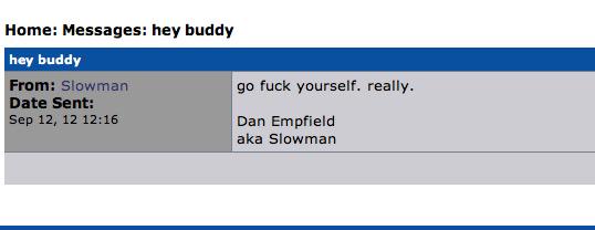 Komm, weiter! Sonst noch was ? Vielleicht hat er ja mal einen Gegner beschimpft, der Widerling ! "schnodo" hat schon recht, danke für deine Beiträge hier! Der Thread ist widerlich. |