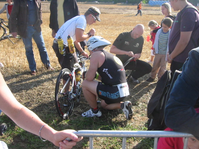 Einschwimmen;- zum Start gings dann wieder an Land: START!!! Helferverpflegung: Leider konnt ich kein Photo davon machen, als der Herr den Bierkasten (und die "Bruckmandl", die drin waren sind garantiert NICHT alkoholfrei gewesen...) an der Seite trug und man reinschauen konnte. Hundert Meter nachm Radstart der erste Patschn. Aber bei DER Helferschar... Zumindest auf der Radstrecke sind offensichtlich alle unsere Helden wohlbehalten angelangt. Hazelman, Flo, Maifelder, HeiFu und einige andere konnt ich lautstark antreiben;- dass sie es bemerkt haben (ausser Maifelder), bezweifel ich dennoch. Aufgrund des befürchteten Verkehrschaos und weil ich die Fahrräder für die Bike-Eskorte nahezu vollständig in der Firma eingeschlossen habe, hab ich davon abgesehen, zum vereinbarten Treff- und Zuschaupunkt in Riekofen zu fahren, um kein Risiko einzugehen. Dafür hab ich nu in der Firma n bisschen Luft, bis mein Programm weitergeht. |
