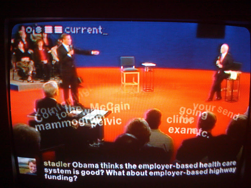 Senator McCain war derartig fahrig-nervoes, der hat mir richtig Leid getan. Die jugendliche Frische Obama's war deutlich ueberzeugender. Ich habe mir nicht die gesamte Debatte angeschaut und daher wohl eine amuesante Episode verpasst. Laut Radio fragte der Moderator, was denn die Kandidaten nicht wuessten und wie sie das zu aendern gedenken, worauf McCain versuchte die Frage zu beantworten (Obama verwies schlicht auf seine Assistenz, die eine lange Liste geben koenne). |