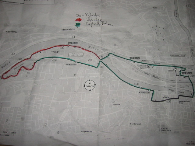 Mein Tipp: Nach dem schwimmen rauf aus die B8 rüber nach PFatter und da bei km 45 gucken. Da sollte man auch die Spitze noch erwischen. Wenn der eigene Athlet dann durch ist, rein ins Auto & ruck zuck über die Donau & durch den Wald nach Unter- bzw Oberlichterwald. Da sollte man die Spitze auf Runde 2 genauso erwischen können wie die eigenen Athleten. NAchdem die dann durch sind, ab zur Laufstrecke! |