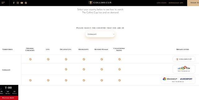 Da der Collins Cup auf Eurosport2 übertragen wird, sollte das klappen Edit: Hafu war schneller, da ich zu blöde war Links einzufügen |