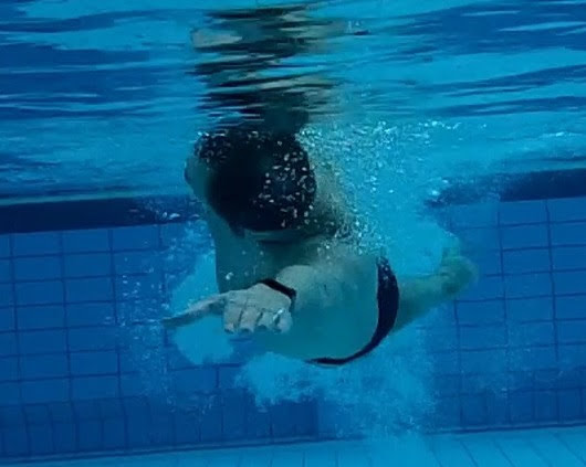 Ansonsten, d.h. mit Atmung zur ziehenden Seite hin, klappt es ziemlich gut, so dass ich es fast entspannend finde und gerne beim Ausschwimmen unterbringe. Was mir gewaltig geholfen hat, damit warm zu werden, war die Erkenntnis, dass obwohl nur einem Arm zieht, die Körperrotation so bleiben sollte als ob ich beide einsetze. Ich habe dazu geneigt, die passive Seite einfach "stehen zu lassen". So kann natürlich kein Rhythmus und keine produktive Pendelbewegung entstehen, sondern es bleibt eine gehemmte, abgehackte Angelegenheit. Als vorbereitende Übung bin ich auch gerne mal den "Sweet Rotation Drill" geschwommen. Das sieht einfach aus ist aber sauschwer; da ging anfangs gar nix. Aber dadurch, dass man da wirklich arbeiten muss, damit sich etwas bewegt, spürt man auch sehr schnell, wo der Impuls herkommen sollte und kann sich durch Ausprobieren herantasten. Das hilft dann für den ganzen Rest der darauf aufbaut. |