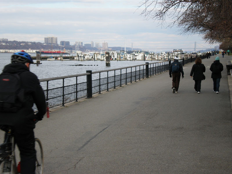 Mit Joe war ich direkt auf einer Wellenlaenge. Er ist ein echter NYer und arbeitet als Radmechaniker. 24 Jahre jung, aber schon oldschooler. Faehrt ein Stahlrahmen. Mag die "performance" von Carbon, aber sonst... Auf dem Rueckweg fuhren wir ein kleines autofreies Straesschen zurueck zur Bruecke. Das war der Hammer. Kaum vorstellbar, dass man sich 20 Radminuten von Midtown Manhattan entfernt befindet. Nette 2:45h Kaffeefahrt. Fotos vom Cafe in Nyack gibt es dann spaetestens im April. Kann man denn Radfahren in NYC? Man kann! |