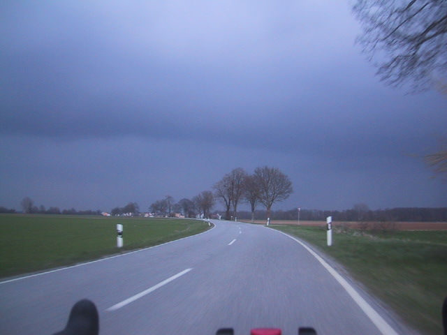Leut, Leut, wenn ihr schreibt, dreh ich mich meist nochmal rum... Da bin ich konsequent und eher die Nachteule denn die frühe Lerche. Sicher gibbet Menschen, die anders gepolt sind, aber bei mir und vielen, die ich kenne, verschiebt sich der Tagesrythmus eher nach hinten als nach vorne, wennse nicht zu nem bestimmten Uhrzeit anfangen müssen oder Urlaub haben (und keine Kinder, die sie im Morgengrauen terrorisieren). Gut, genug Vorspiel, zur Sache, Schätzchen! Irgendwie war mich zwar nicht direkt danach, ich hab aber dennoch s Rad geschnappt. nutzt ja nix;- wir sind ja nicht zum Spass hier. War relaxed zu fahren und sogar die IXUS hatte nen guten Tag, denn die hab ich einfach mit nem frischen Akku bestückt und in die Hecktasche gesteckt. Lucky you, von ein paar Spinnereien abgesehen, hatse den Tag ganz gut überstanden. So sehen die unasphaltierten Ecken ungefähr aus, wobei das zweite Bild am Ende von nem zerfurchten Weg ist, an dem man gute Seitenführung der Puschen begrüsst, mit der man sich aus Spurrillen befreien kann, ehe die Pedale rechts und oder links aufsetzen oder der Körperschwerpunkt ne andere Richtung nimmt als die Furche. Das Wetter sieht eigentlich besser aus als angekündigt;- hatte zwar nachts geregnet, aber nicht viel. Nachdem ich keine Notriegel dabeihatte (ich hab ab und an die Angewohnheit, keine Lust zum Einkaufen zu haben und es dann auch zu lassen und das zu essen und zu trinken, was noch da ist, auch wenns dann trockene Nudeln oder gekochte Karotten und nix dazu gibt. Hab zwar heute früh beim Bäcker ne handvoll Futter raugetragen, aber keine Snickers gekriegt, die mir aktuell am meisten taugen, wenn aufm Heimweg der kleine Hunger anklopft), war mir noch viel weniger nach heimradeln zumute, aber was soll man machen... Extremes Ampelpech heute brachte miese Zeiten beim Verlassen der Stadt, dann aber rummste der Wind von hinten und der Postdampfer schoss wie von der Sehne geschnalzt schnurstracks auf ne Regenfront zu: (click the pic!) Das ging ab wie Luzie;- richtiges Zeitfahrfeeling und mit den fetten Reifen gingen mir auch die Gänge nicht aus. Tja, und dann wurds feucht. Mittlerweile ging mir aber der obige Ohrwurm nimmer ausm Kopp und der Rest der Strecke mit eiskalten Füssen halbwegs flott rum. Als ich die Musik für den Beitrag hier dann raussuchte, erinnerte ich mich wieder an das Thema des Blogs hier. Okok, sieht aufm Video eher nach Sitzparty fürs Altenheim aus, aber hat doch was, oder? Was mich mehr nervt, iss die ständige Mitteilung, dass irgendwelche Beiträge bei DuRohr Inhalte von XY enthalten und daher in meinem Land (Jaja, schön wärs, ich als König von Deutschland, neenee, danke, lass ma...!) nicht verfügbar seien. Neonhelm, du hattest da doch mal ne Umleitung über nen Proxy oder so verlinkt?! Hilft das? |