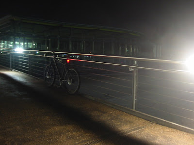Solange man auf halbwegs ausgefahrenen Wegen bleibt, funktioniert die Sache schon, dafür braucht man dann aber sicher die IceSpiker nicht;- da reichen auch die Marathon Winter. Und für die Pfade, wo die Puschen hinschieben, wo sie wollen, täts wohl nur so n Surly Pugsley, aber das gefällt mir nu wirklich absolut zu wenig. Fakt ist: die ganzen Taschenspielertricks, die am Motorrad funktionieren (Gewicht nach hinten, Zug auf die Kette, Luft ausm Reifen und Lenker lockerlassen, dann sucht sich das Vorderrad seine Spur), sind am Fahrrad für die Füsse. Punkt. Ansonsten wars durchaus spassig, von den unfahrbaren Schiebepassagen abgesehen. Die Technik funktioniert einwandfrei! Auf der ersten Ausfahrt Freitagnacht hab ich die Schaltung eingestellt (hab den Einsteller nu direkt am Travel-Agent angebracht, wo er während der Fahrt erreichbar ist), seither geht alles super! Nur die Scheibenbremsen ärgern mich, da sie so gut wie nicht schleiffrei zu kriegen sind, ohne zu viel Hebelweg zu haben. Dazu kommt, dass die Ausfallenden vom Hinterbau offensichtlich so krumm sind, dass sich die Einstellung bei jedem Hinterradaus- und -einbau und je nach Drehmoment ändert. Ab Ende Januar gibbet die Kinesis-Kopie der Pace-Gabel wieder, dann wird der Huber lackiert und für die Saison rausgeputzt. Eins sei versprochen: Schwarz lässt sich schwerlich vermeiden, aber weder Weiss noch Rot wird nen Weg ans Rad finden. Einzig, nicht artig! |