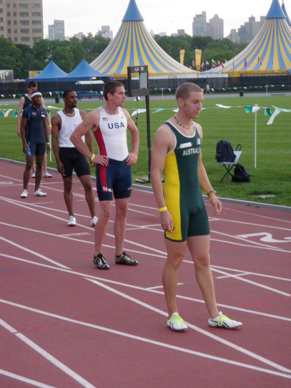 Heute war letzmalig Dienstag-Abendsportfest im Icahn Stadium angesagt und endlich konnte ich es mir auch einmal einrichten, um das heilige Oval vor dem 10.000m Lauf am 10. Juli anzutesten. Gemeldet hatte ich mich fuer die laengste Strecke, die 3.000m. Waren an den vorherigen Dienstagen mit Mueh' und Not zehn Hansel am Start, so waren es dieses Mal ca. 25. Die Haelfte aller Teilnehmer des Abends war vom Zentralpark Bahnverein. Einerseits beeindruckend, andererseist auch Schade. Das Rennen war fuer mich sehr spannend, da es erst mein zweites Bahnrennen ueberhaupt war, nachdem ich vor einem Jahr in Dublin 1.500m lief. Mit 9:11 min. bin ich zurfrieden, auch wenn es nicht ganz der Bringer ist. Gut genug jedenfalls, um optimistisch zu sein. Die Nike Matumbos sind ein Traum, besser als Barfusslaufen. Damit werden auch die 10.000 kein Problem. |