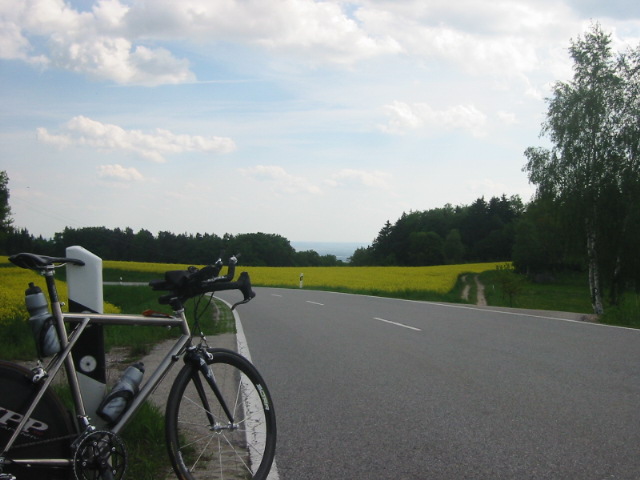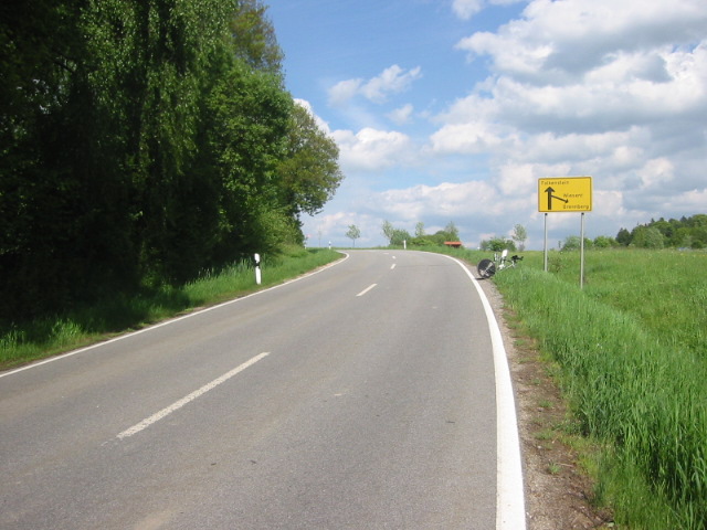 Während man dem Forum anmerkt, dass zum Pfingstmontagabend alle heimkehren, schraub ich hier mal wieder alleine die Beitragszahlen in die Höhe...Cheese: Nach dem vorsichtigen Tasten in den vergangenen Tagen, wollt ichs heute ja halbwegs krachen lassen. Haute auch prinzipiell gut hin;- die Temps um 27°C sind halt voll mein Ding. Angesagt war die IM-Runde, wiedermal, aber ich wollte die endlich mal mitm Titanbolzen unter die Räder nehmen. Einige haben ja bereits bemerkt, dass die Schleife durch Wörth/Donau weggefallen ist, dafür gehts jetzt in Aufhausen nimmer rechts, sondern durch den Ort strack durch und auf der andern Seite wieder raus, durch den nächsten Weiler und danach erst rechts. Für meine Begriffe hat die Strecke dadurch ungemein gewonnen. Landschaftlich, so wie durch die Ortsdurchfahrt von Hagelstadt, ausserdem ist das Teilstück nicht so dem Wind ausgesetzt. (Die Hagelstädter wollen mit diesem Affront von Maibaum wohl aus Bayern rausfliegen!? Man siehts nedd, aber das Ding iss nedd blauweiss angepinselt, sondern, wie die Krone verrät, wie n Giraffenhals...) Wir hatten heute nach Beaufort Windstärke 6-7;- das hat mich mit der Scheibe ganz schön durch die Landschaft gewirbelt und kurz vor Moosham beim Anbremsen der Ecke unter der Bahnunterführung fast in die Leitplanke gewixt. Aber irgendwer hatte die Ansage getroffen, dass die strecke heute "mit Zug auf der Kette" gefahren würde;- hoffentlich waren die Herrschaften vor Ort und haben die lauen Lüfte (bewegterweise...) geniessen können. Durchschnittlich iss der Wind etwas weniger, aber nedd viel, und die Richtung etwas westlicher. Nur fürs Protokoll. Hier hat wohl der letzte Wind das Pflanzerl dahingerafft;- neulich stand er jedenfalls noch... "Herzlich willkommen in unserer Firma! Sie haben sich als Blitzableiter beworben?" Diese Ansicht in natura liebe ich: (Wir sind uns ja einig, dass man die Steigung aufm Foto nicht sieht, aber wer die Strecke nicht kennt, präge sich das Bild ein. Kurz vor Aufhausen wird er/sie am 1.8. zwei Mal die Gelegenheit haben, meine Begeisterung zu teilen...:Cheese: ) |