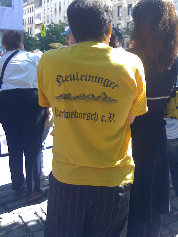1. Die Zahl der Lauffreds im Forum steigt exponentiell. 2. Die Temperaturen in NYC werden lauftauglicher. Ausgezeichnetes Training mit Thom. Ich bin mitten in der Konvertierung zu Meilen. Die Umrechnerei wird mir naemlich zu bloed. 14 Meilen im 7er Schnitt, dann 5 Meilen im 5:30er und 2 Meilen im 8er Schnitt. Das Ganze mit ein paar Schluck Wasser. Es lief blendend! Und da Ihr eh' alle laengst nur die Bildchen anschaut, kommen wir schnell zu 3. Oktoberfest aka 'Steubenparade' hier in NYC. Deutschland soll ganz schoen sein. Muss ich unbedingt mal Ferien machen. Paralell fand... |