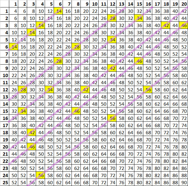 Neben den 2 Gleichungen bestehen noch die Randbedingungen, dass alle Variablen natürliche Zahlen sind und nicht größer als 25. |
