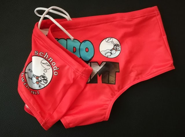 Ein leicht malader schnodo weiß nicht, ob er heute überhaupt schwimmen kann. Aber fürs nächste Schwimmen ist der Bademoden-Zuschlag schon gesichert, weil die Dame von FedEx mir etwas Schönes gebracht hat.