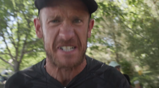 Als er das Rennen zum ersten Mal bestritten hat, hat Lionel gewonnen, in 2016. Lionel hatte 31 Minuten Vorsprung auf Sam. Er versucht, dieses Szenario vor Augen, mit Händen und Füßen zu berechnen, wie viele Minuten er aufholen muss, um vor Lionel zu sein. Das Sportlerhirn in der Taperphase funktioniert vermutlich nur noch mechanisch, es dauert: 32 oder 33. Respekt!