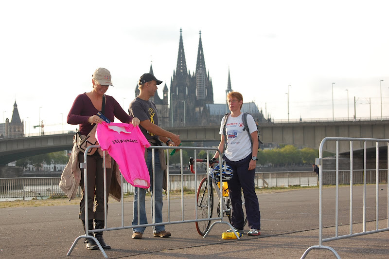 Nicht nur ich frage mich, ob ich auf den ersten drei Runden die Zieleinfahrt übersehen habe , denke mir aber dann, dass sie wohl nach den matten am Wendepunkt liegt. Und genau so ist es. Als ich die Deutzer Brücke hinuntergerollert komme, klatscht erst die allertollste Alex und ein paar Meter weiter in der Kurve stehen meine Eltern. Haben sie es doch geschafft. Ich find die ja immer so süß begeistert: "Jung, Jung, prima!" *wildaufgeregtklatsch*.