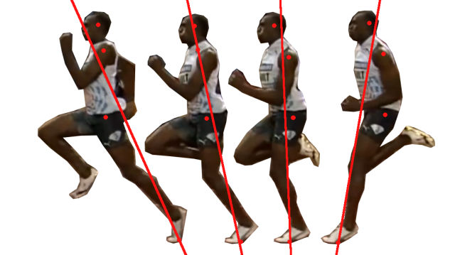 PS: Jetzt war ich doch mal neugierig, wie das bei Bolt so aussieht und habe mir die Phase vom ersten bis knapp vor dem letzten Bodenkontakt veranschaulicht. Ich kann daraus nichts deuten, aber vielleicht findet es der eine oder andere interessant.