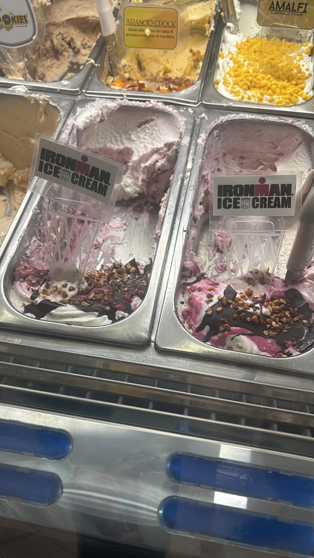Im Ziel nach etwas über 13 h, na ja, da geht mehr. Kein Neo, das wär’s gewesen, Zeitfahrrad stand nicht zur Verfügung und kein flüssiges Laufen wegen trinken, trinken, trinken. Apropos: aktuell trinke ich zu viel, es gab sogar Wein vorm Rennabend. Und dann noch zwei Erholungspausen in T1 und 2. Na ja, schon ok.